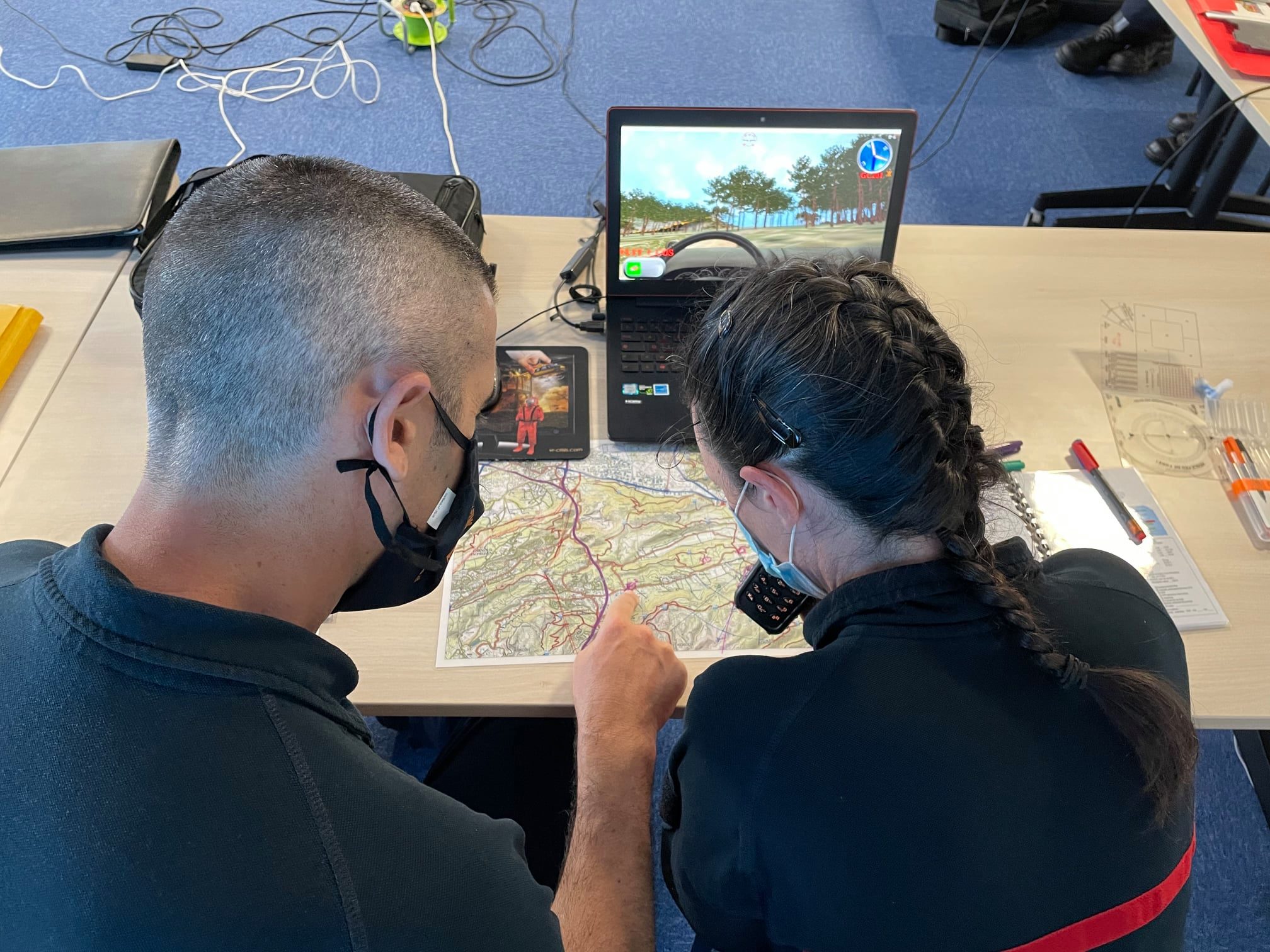 Avec l'arrivée des beaux jours, les sapeurs-pompiers spécialisés feux de forêts révisent leurs fondamentaux et s'entraînent afin de préparer la saison feux de forêts 2021 qui devrait débuter ce mois-ci, selon les conditions météorologiques. La semaine dernière, le SDIS de la Haute-Garonne organisait ainsi une formation de maintien des acquis destinée aux chefs de groupe FDF3 et chefs de colonne FDF4 de l'établissement. Ce stage s’est déroulé sur 3 jours, du 1er au 3 juin, dans les locaux du groupement prévention. Il était encadré par 3 officiers du niveau chefs de colonne et placés sous la responsabilité pédagogique du commandant Bruno Malautier, conseiller technique départemental et du commandant Patrick Moreau, son adjoint. En tout, une quarantaine de stagiaires a pu réaliser des mises en situation professionnelles grâce à la présence d'outils pédagogiques adaptés, 6 postes de travail reliés à des simulateurs pour une mise en condition réelle. Ces solutions développées par la société Crisis Simulation Engineering dont 2 techniciens étaient également présents, simulent des véritables départs de feux, avec l’anticipation des manœuvres appuyée par les moyens aériens.
